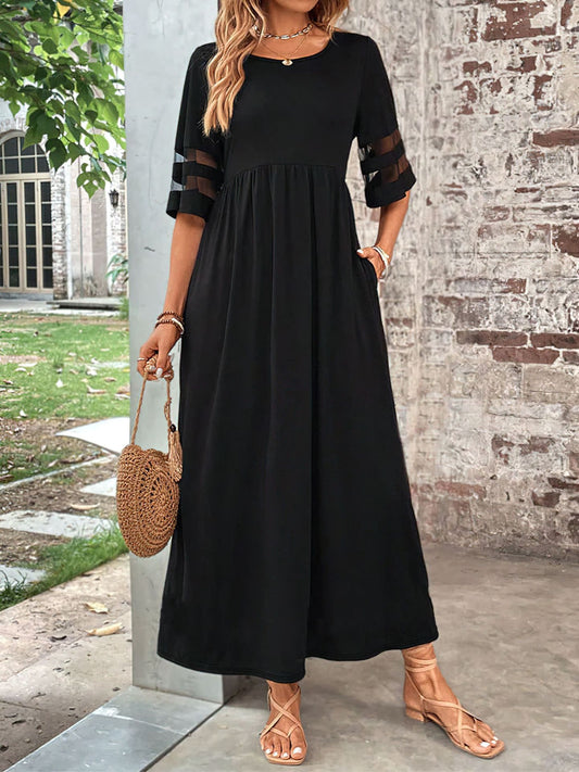 Plus Size Mesh Sleeve Round Neck Dress with Pockets