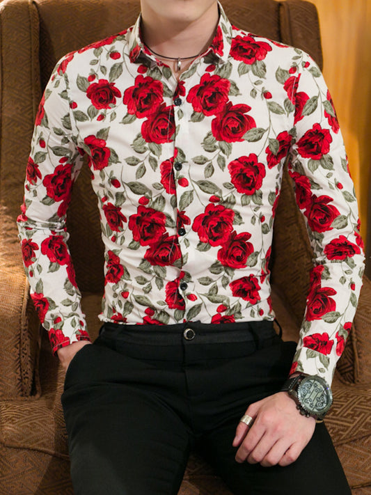 Men's Plus Size Floral Print Slim Fit Long Sleeve Shirt