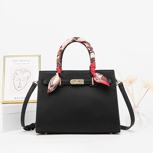 Scarf Decor Leather Handbag