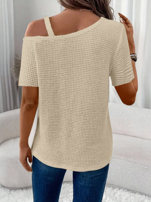 One-Shoulder Chain Detail Waffle Knit T-Shirt