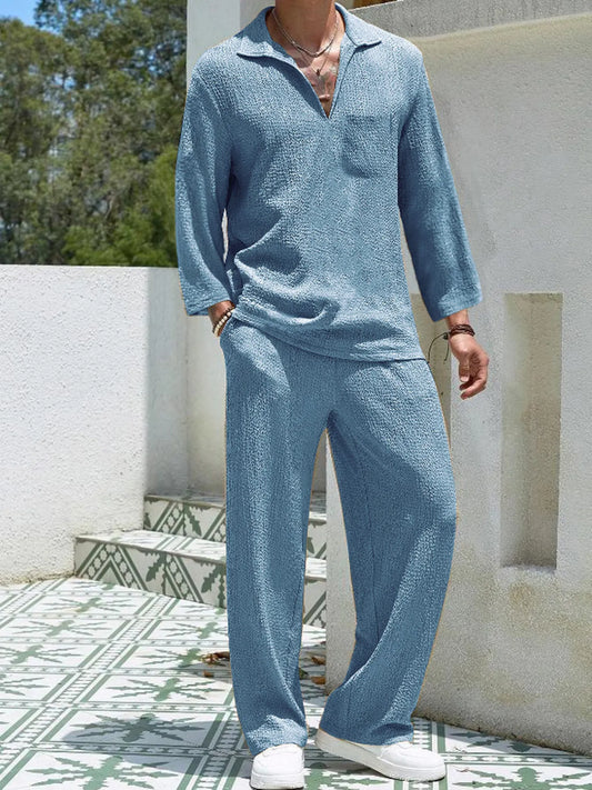 Men's Plus Size Long Sleeve Top and Pants Set