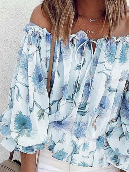 Off-Shoulder Floral Print Blouse