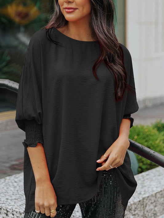 Full Size Round Neck Lace Long Sleeve T-Shirt Plus Size