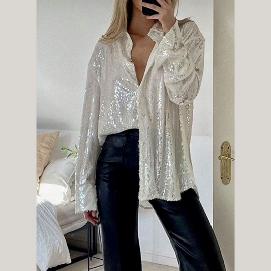 Sequin Crisscross V-Neck Cold Shoulder Blouse