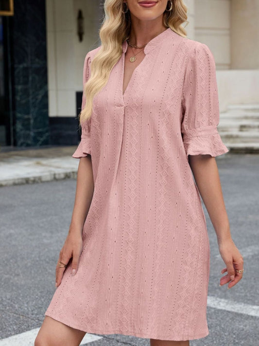 Plus Size Lace Detail Printed Tie Neck Half Sleeve Dress
