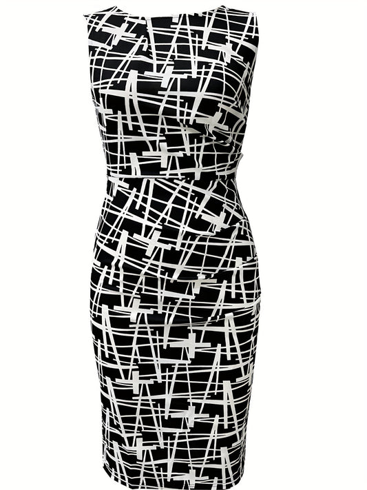 Women's Casual Waist Closed V-neck Sleeveless Dress