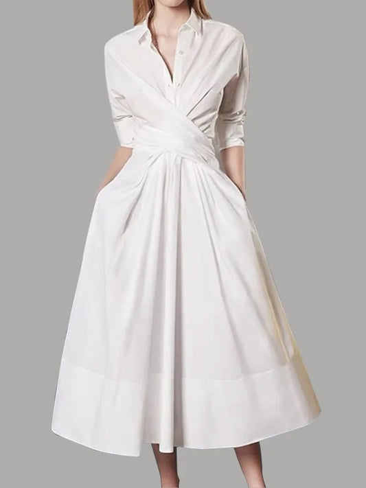 Polo Collar Solid Color Dress