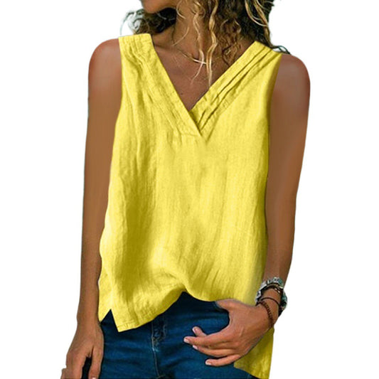 Split Sleeveless Cotton And Linen Multi-layer Collar T-shirt