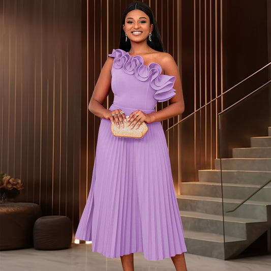 Women's Solid Color Ruffled High-Slit Bodycon Dress Sparkling Off-Shoulder Party Dress For Summer
