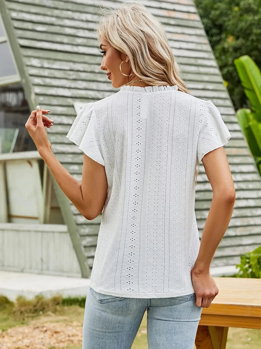 Hollow Out Waffle Knit Short Sleeve T-Shirt