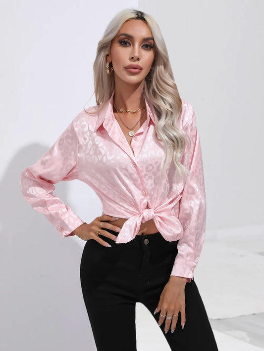 Button Down Collared Neck Short Sleeve Satin Shirt