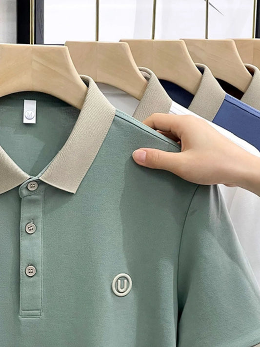 Men's Plus Size Breathable Short Sleeve Contrast Polo