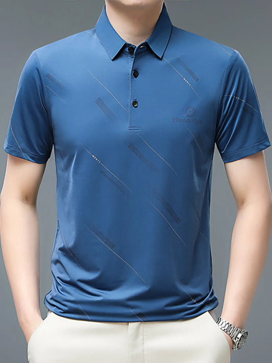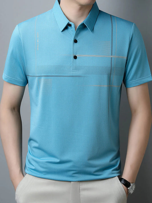 Men's Plus Size Classic Striped Quick-Dry Polo Shirt