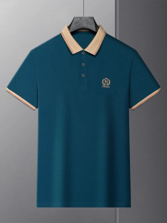 Men's Plus Size Embroidered Short Sleeve Contrast Polo