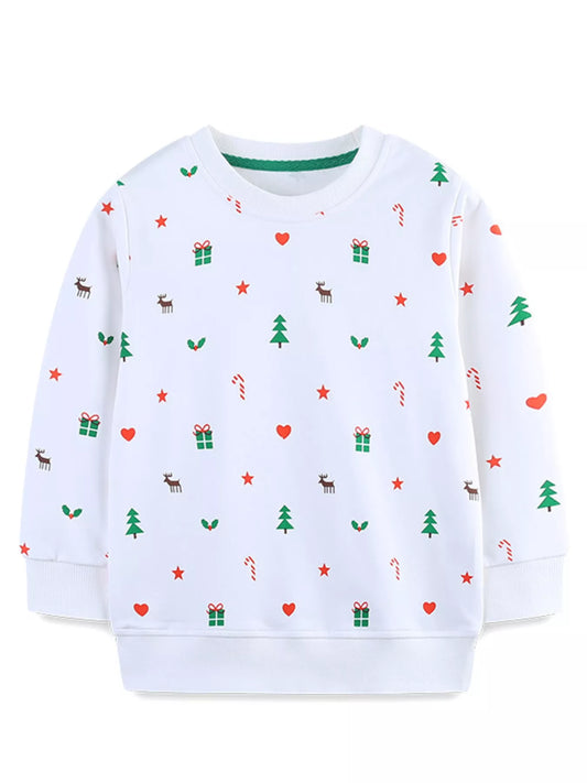 Children's Christmas Pattern Print Crew Neck Sweatshirt