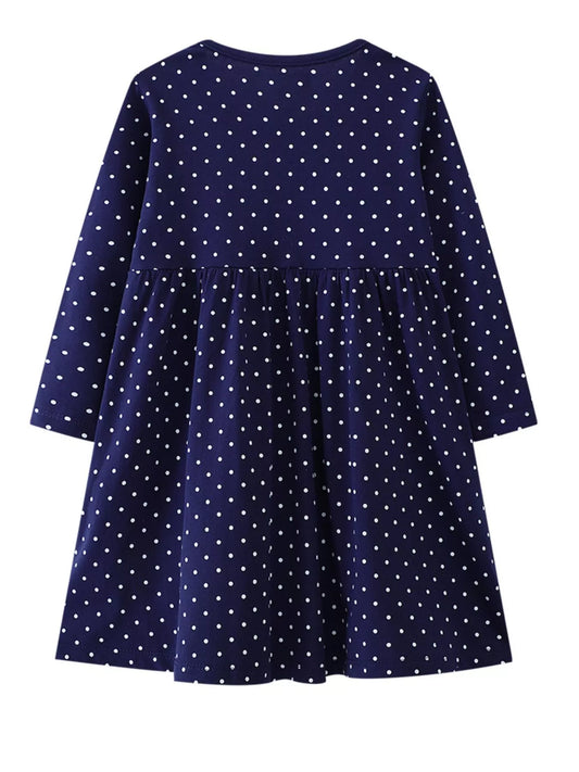 Children's Cute Animal Embroidered Polka Dot Long Sleeve Dress