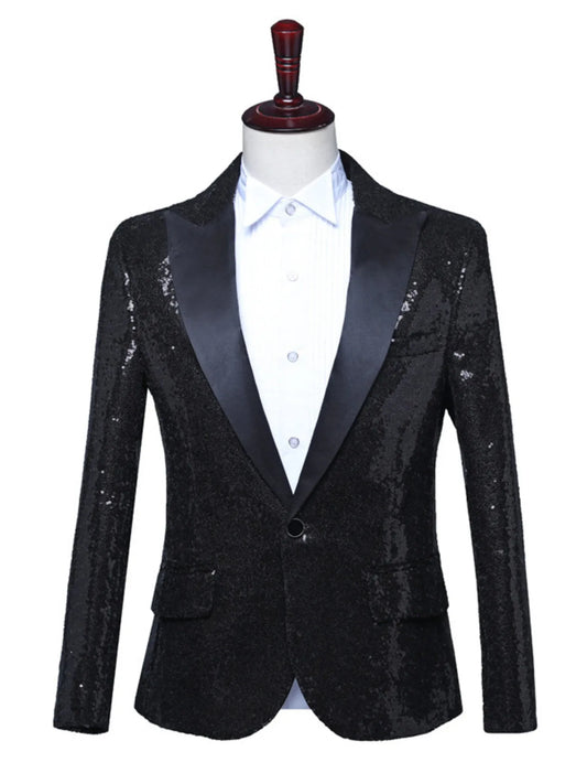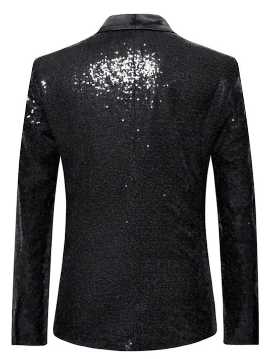 Men's Full Size Sequin One Button Long Sleeve Blazer Plus Size