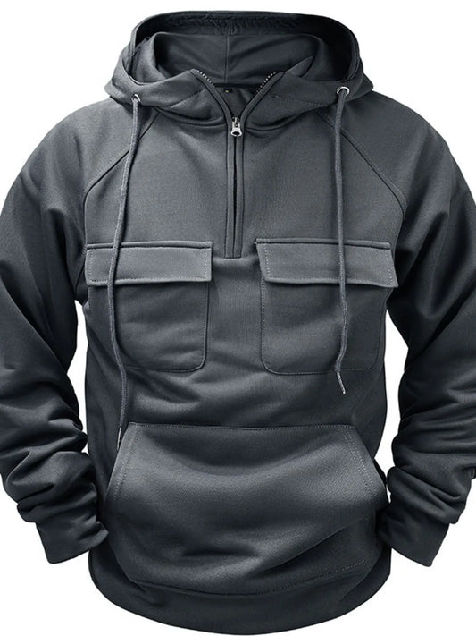 Men's Full Drawstring Half Zip Hoodie Plus Size