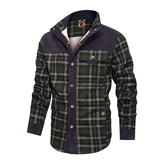 Thickened Shirt Jacket With Classic Plaid Fuzzy Fleece Lining Inside Design