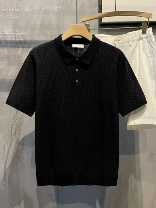 Men's Plus Size Textured Short Sleeve Casual Polo Shirt