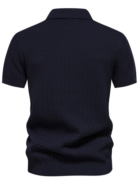 Men's Waffle-Knit Collared Neck Short Sleeve Polo