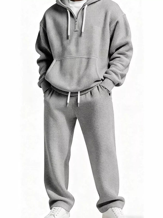 Men's Full Size Waffle-Knit Half Zipper Hoodie and Pants Set Plus Size