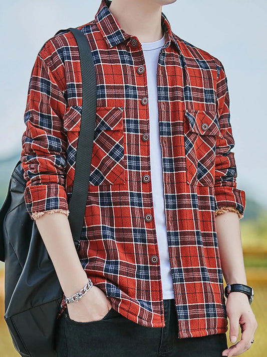 Plus Size Men’s Casual Plaid Button-Down Shirt