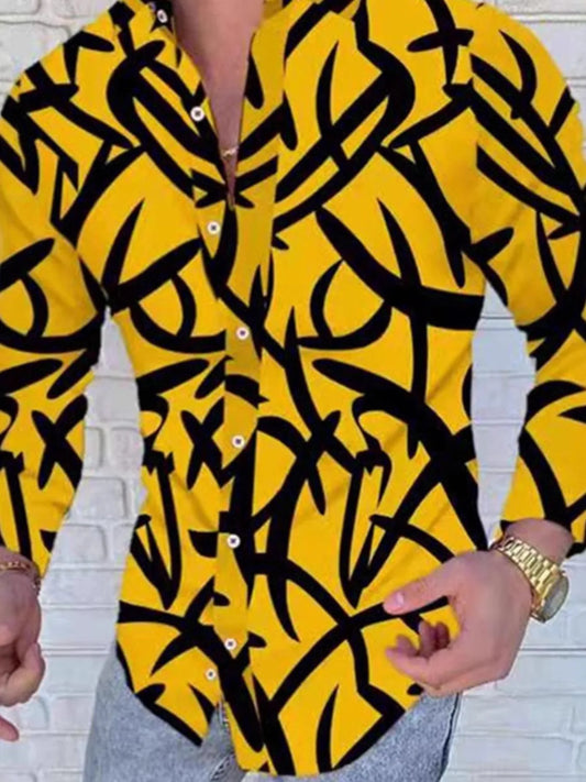 Men's Plus Size Fashion Print Long Sleeve Shirt