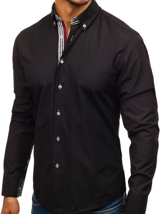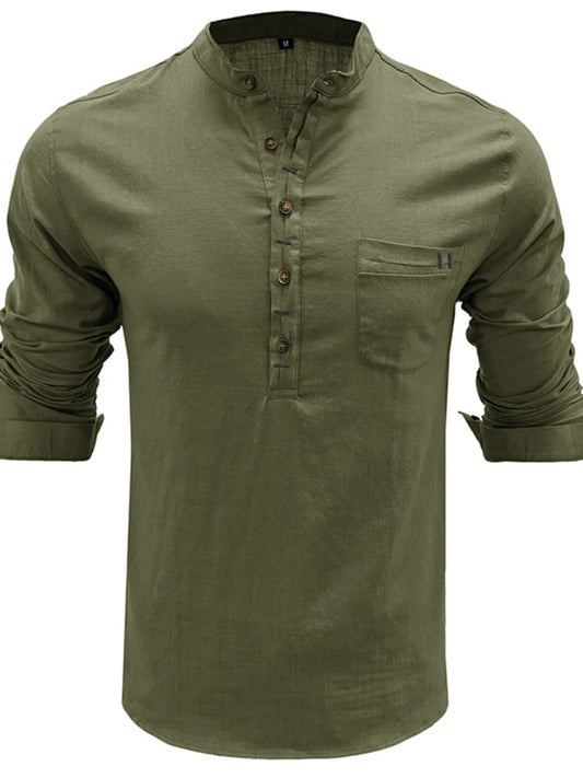 Relaxed Fit Collared Long Sleeve Shirt for Men