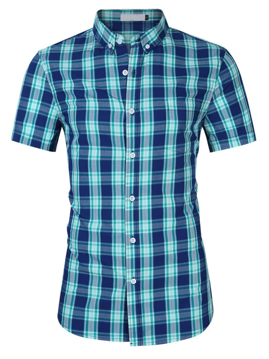 Men's Plaid Collared Neck Short Sleeve Shirt