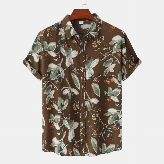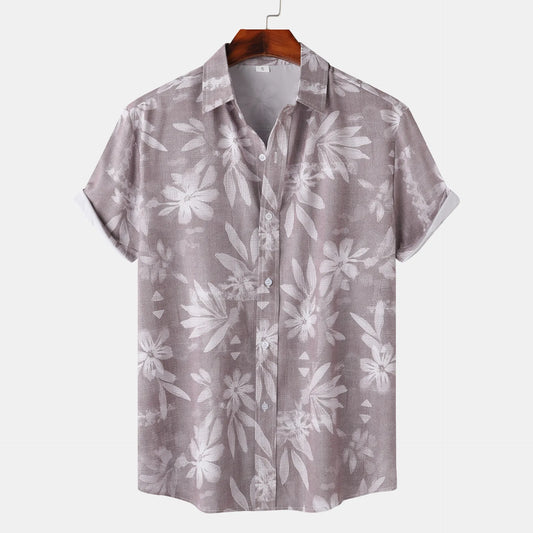 Men's Plus Size Floral Print Short Sleeve Button-Up Shirt