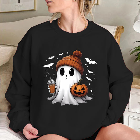 Women's Sweatshirt Halloween Ghost Pumpkin Bat Print Pullover