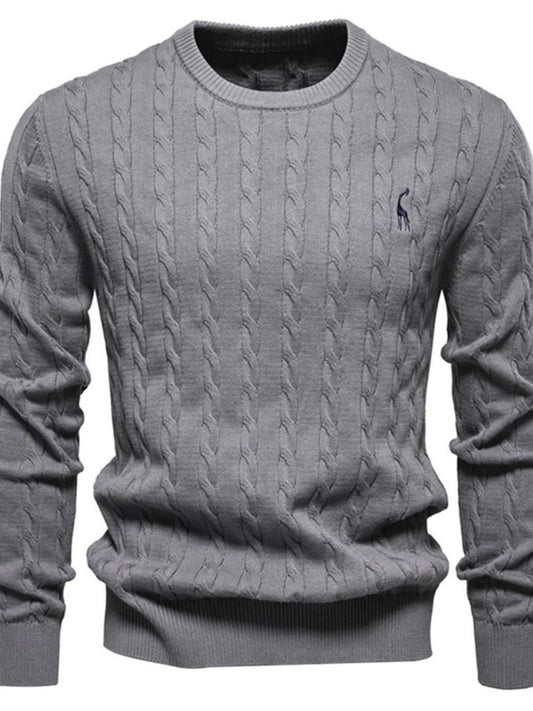 Men's Cable-Knit Round Neck Long Sleeve Sweater