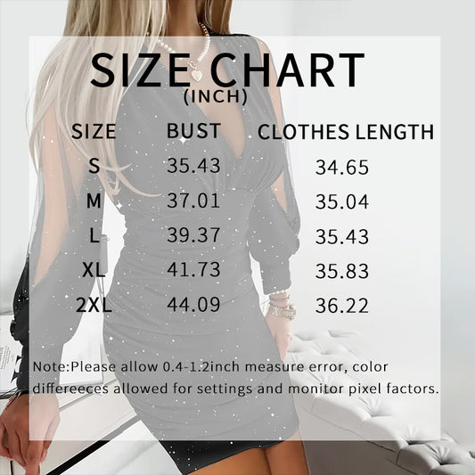 Women's Sexy Deep V-Neck Ruched Bodycon Mesh Long Sleeve Sparkling Party Dress - Free USA Shipping