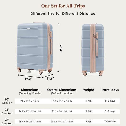 Luggage Set New Expandable ABS Hard Shell 3 Pieces- FREE USA SHIPPING