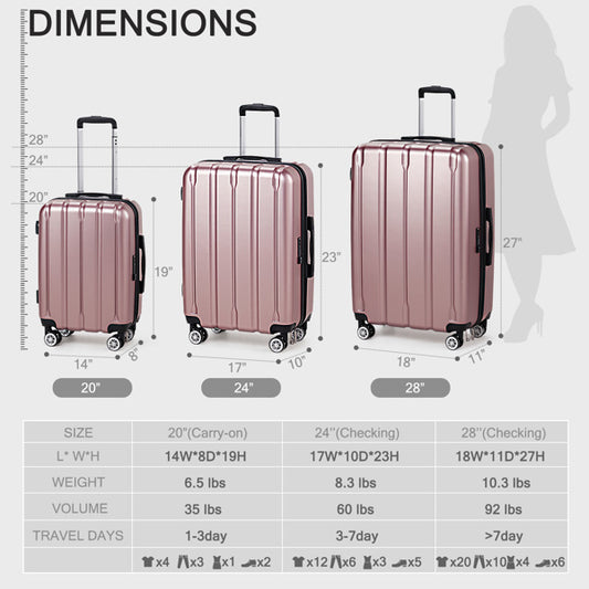 Curved Vertical Pattern Three In One ABS&PC Luggage- FREE USA SHIPPING