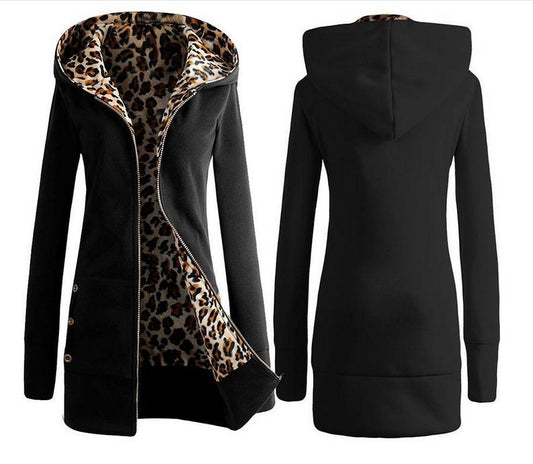 Hooded Thickening Leopard Print Sweater Plush Coat Female