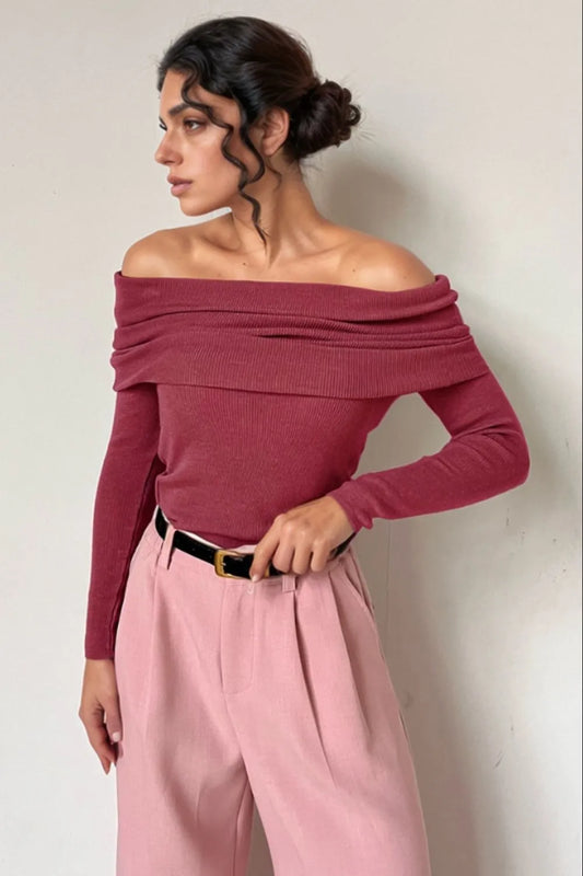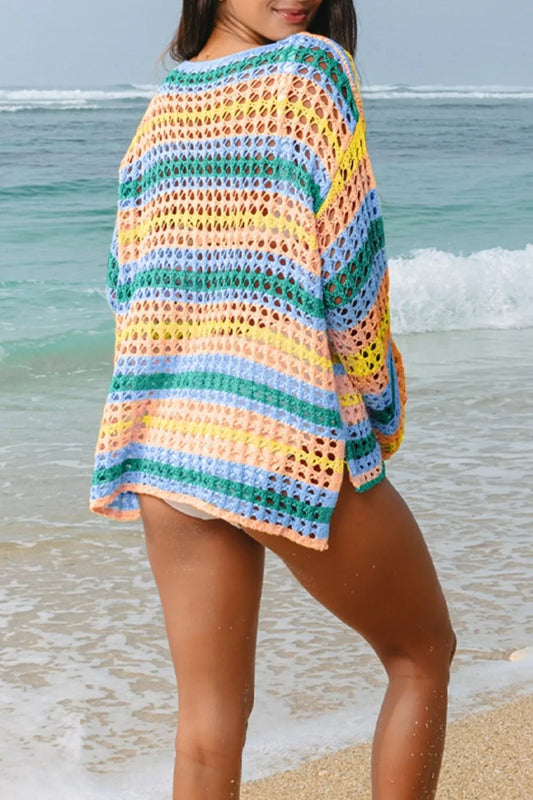 Openwork Boat Neck Long Sleeve Knit Cover Up