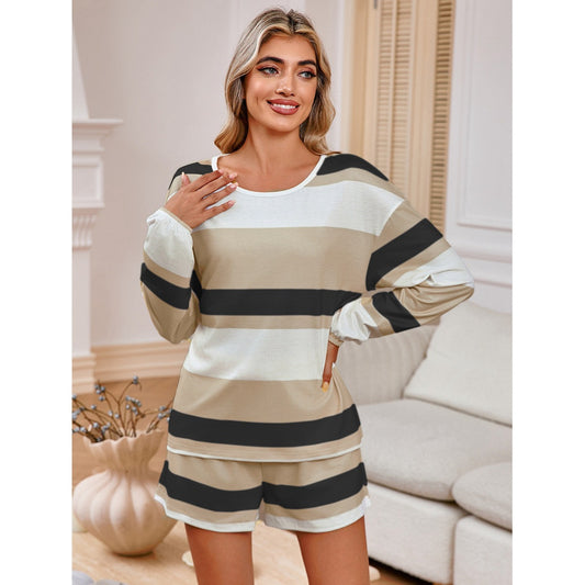 Women's Long Sleeve Striped Top Shorts Casual Suit Pajamas