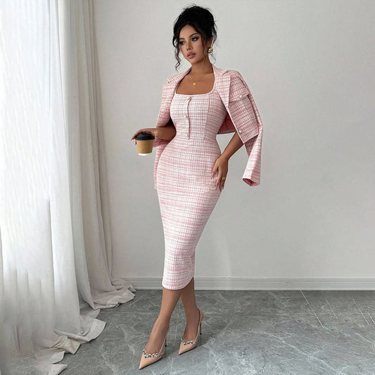 Women's Clothing Skirts Suit Lapel Long Sleeve Short Plaid Jacket