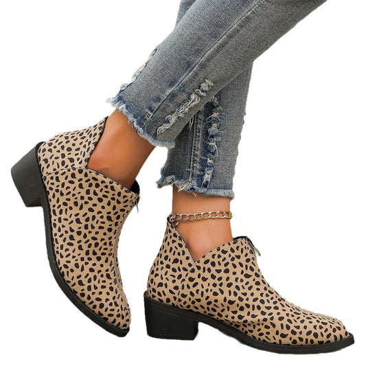 Autumn Round Head Chunky Heel High Heel Leisure Platform Lace Up Booties