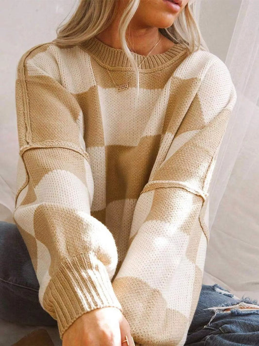 Sold outCheckered Pattern Oversized Sweater