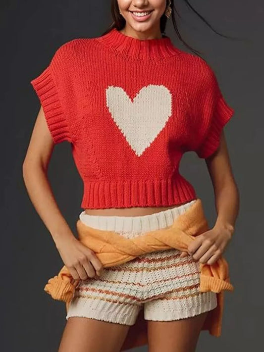 Heart Graphic Short Sleeve Knit Sweater