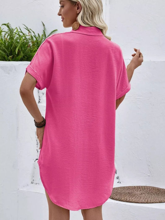 Full Size Casual Button-Down Roll-Up Sleeve Shirt Plus Size