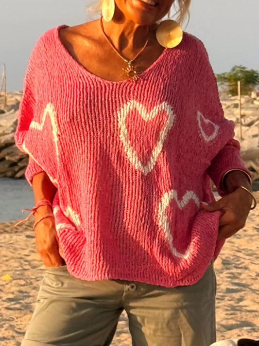 Floral Print V-Neck Long Sleeve Cozy Knit Sweater