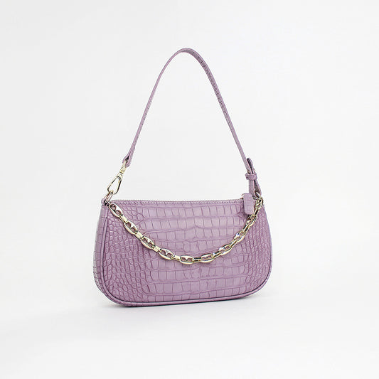 Vertical Stitching Bright Leather Lizard Pattern Large Capacity Shoulder Bag