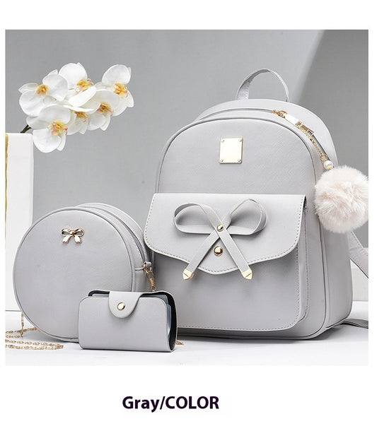 Fashion Women's Bags PU Bow Composite Bag Young Girl Student Cute Shoulders Backpack Crossbody Bags Coin Purse 3pcs Set