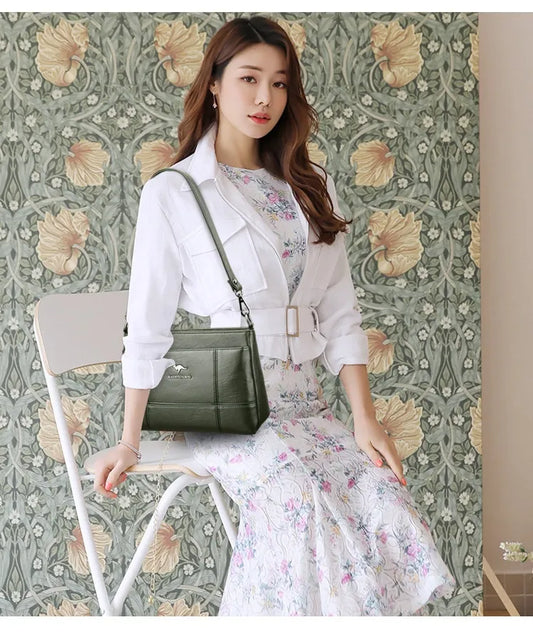 Retro Multi-layer PU Bag Women's Simple High-grade Crossbody