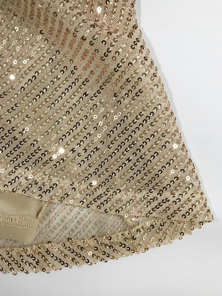 Autumn And Winter New Women's Sexy Gorgeous Sequined Dress Pleated Cross Strap Vacation Style Dress