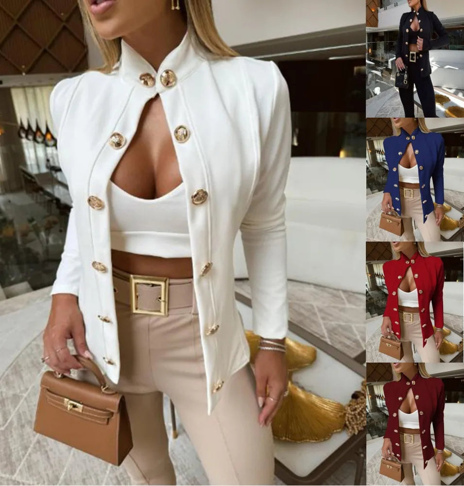 Autumn And Winter Stand-up Collar Slim-fit Long-sleeved Double Breasted Coat